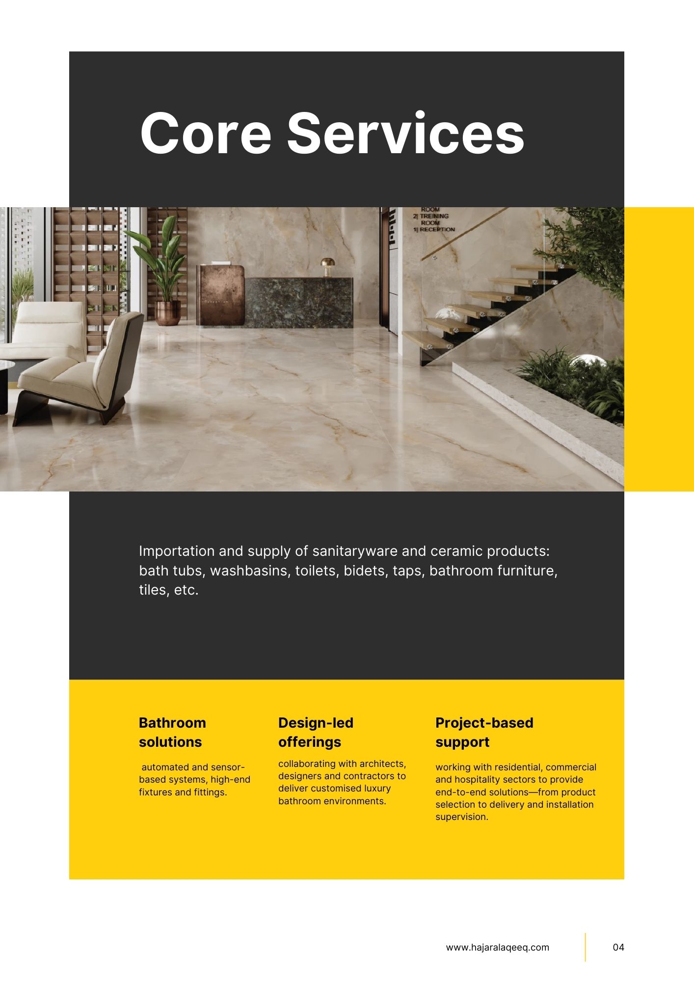 Website Coders designed and produced the company profile of Hajar Al Aqeeq to present the company in a clear and professional way to clients, partners, and project owners. We first studied the company’s activities, services, and target sectors, then organized the content into a structured flow covering introduction, vision and mission, services, projects, and contact information. The objective was to create a profile that can be used for tenders, business meetings, and marketing presentations.